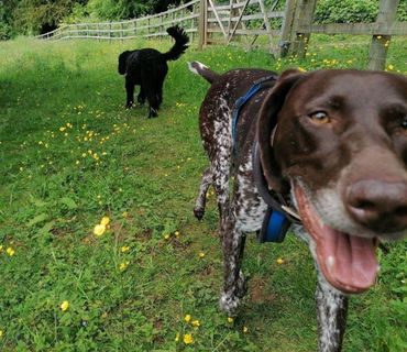 for each walk showing time and length of walk, route taken and photos. I do not walk large groups of dogs, dogs can be walked solo or in a limited pack size of three dogs per walk.